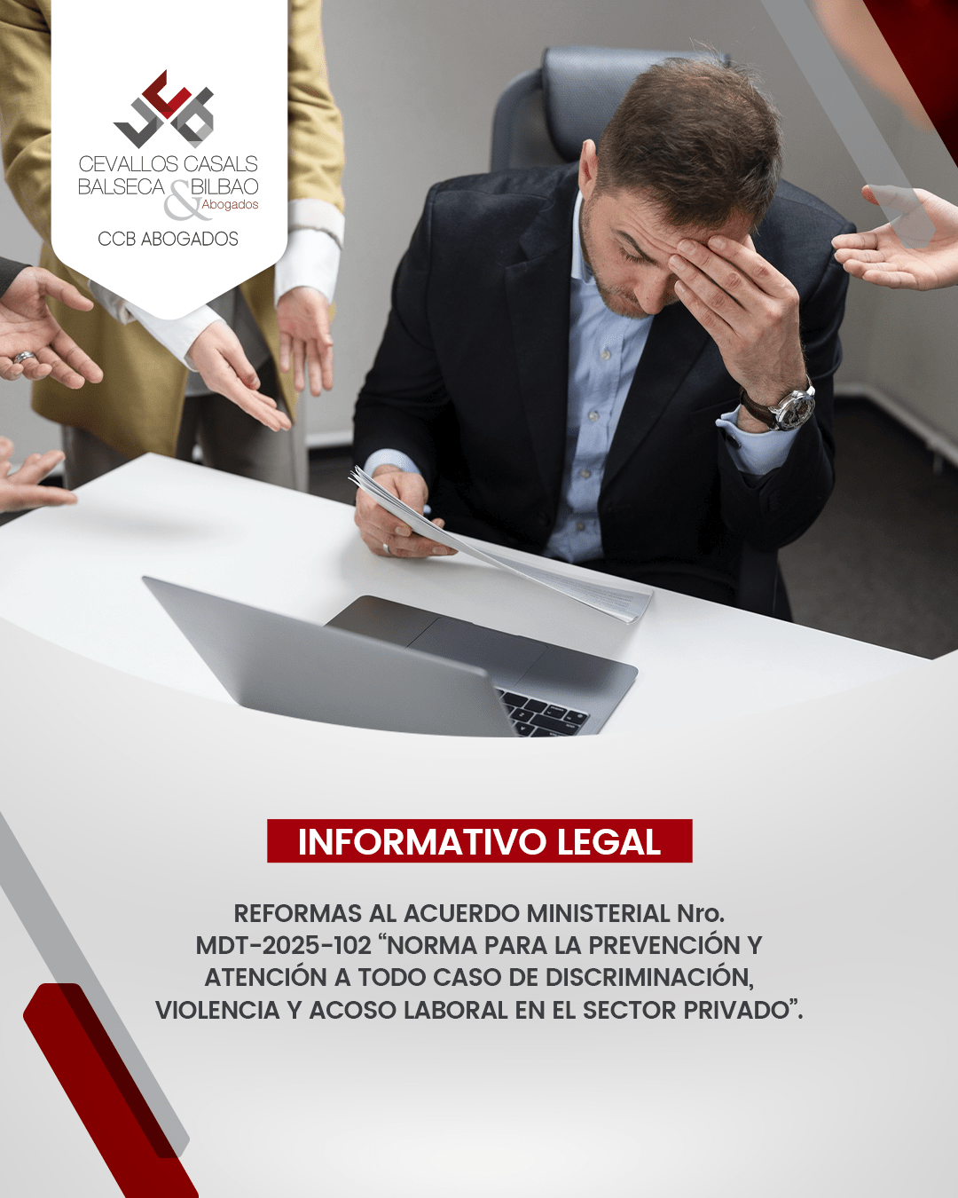 Informativo legal l Reformas al acuerdo ministerial Nro. MDT-2025-102 “Norma para la prevención y atención a todos en caso de discriminación, violencia y acoso laboral en el sector privado»